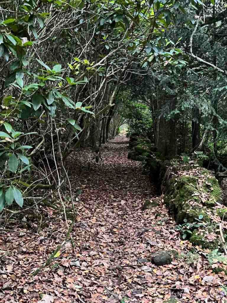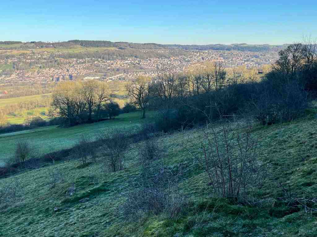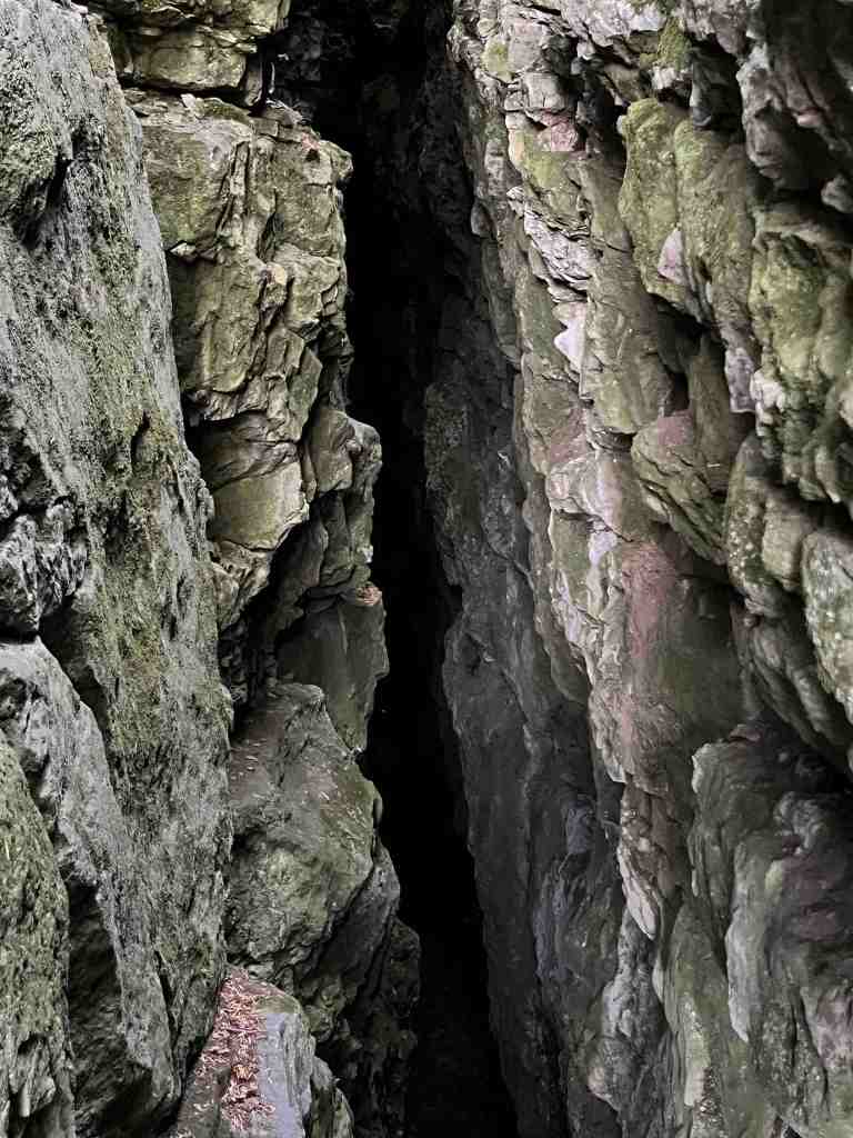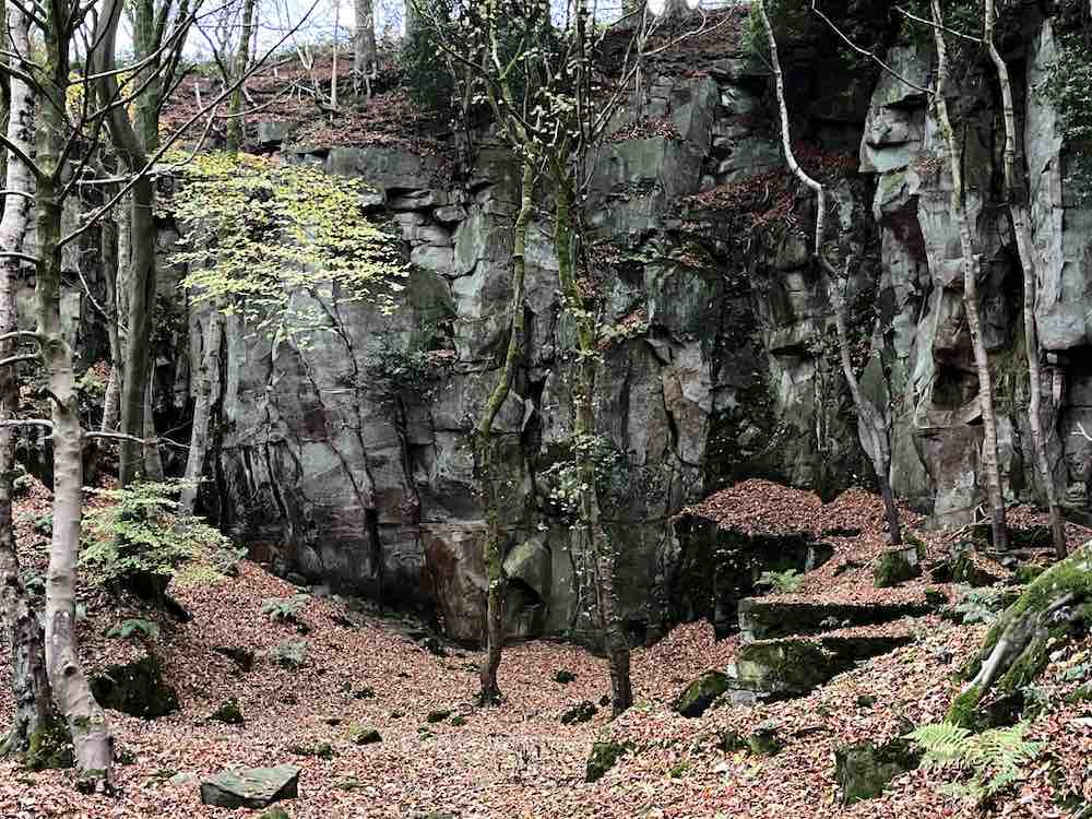 After a while, the path becomes grassy and even and it is a lovely walk through the wood. You are unlikely to meet many people on this track and it is very peaceful. When you reach a wall with a gate, make sure you turn left to continue through the woods. You will eventually come out in the fields at the top end of Curbar. Take the path uphill and join the road just before the big bend. There is no choice now but to follow the road back to the car park. It isn’t as steep as it appears on the map, and towards the top you can walk on a grassy footpath, where you will come across a couple of boulders with religious inscriptions, the one below from Isaiah and another from Hebrews. At this point, you will have walked about 3 miles.