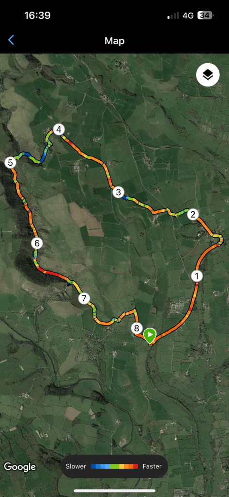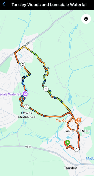 Total distance: 4.9 miles; total ascent 551ft and similar descent; Maximum altitude 1,128ft.