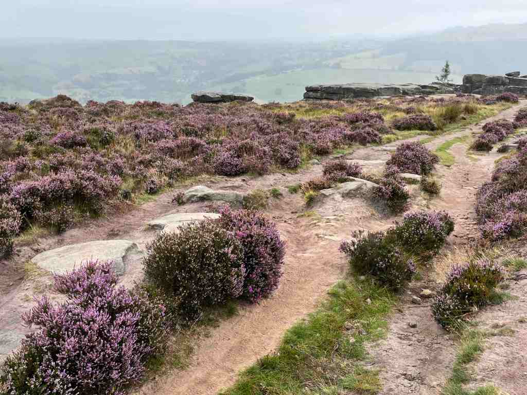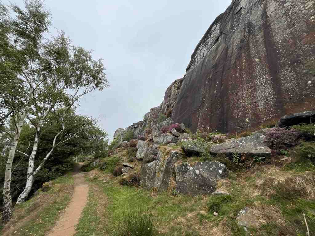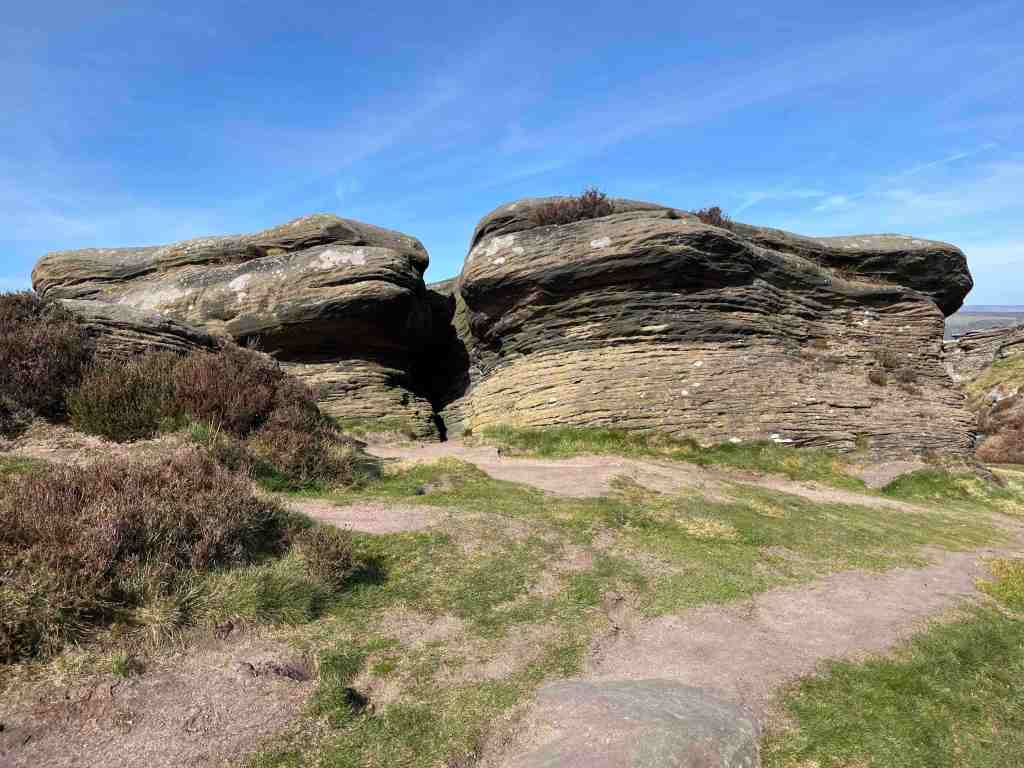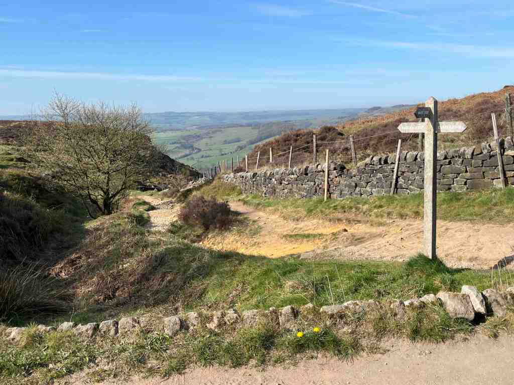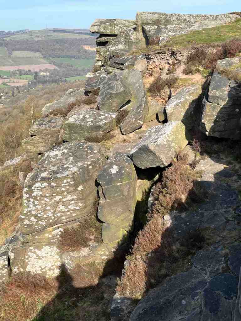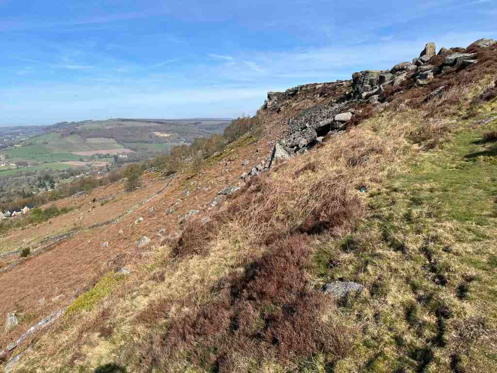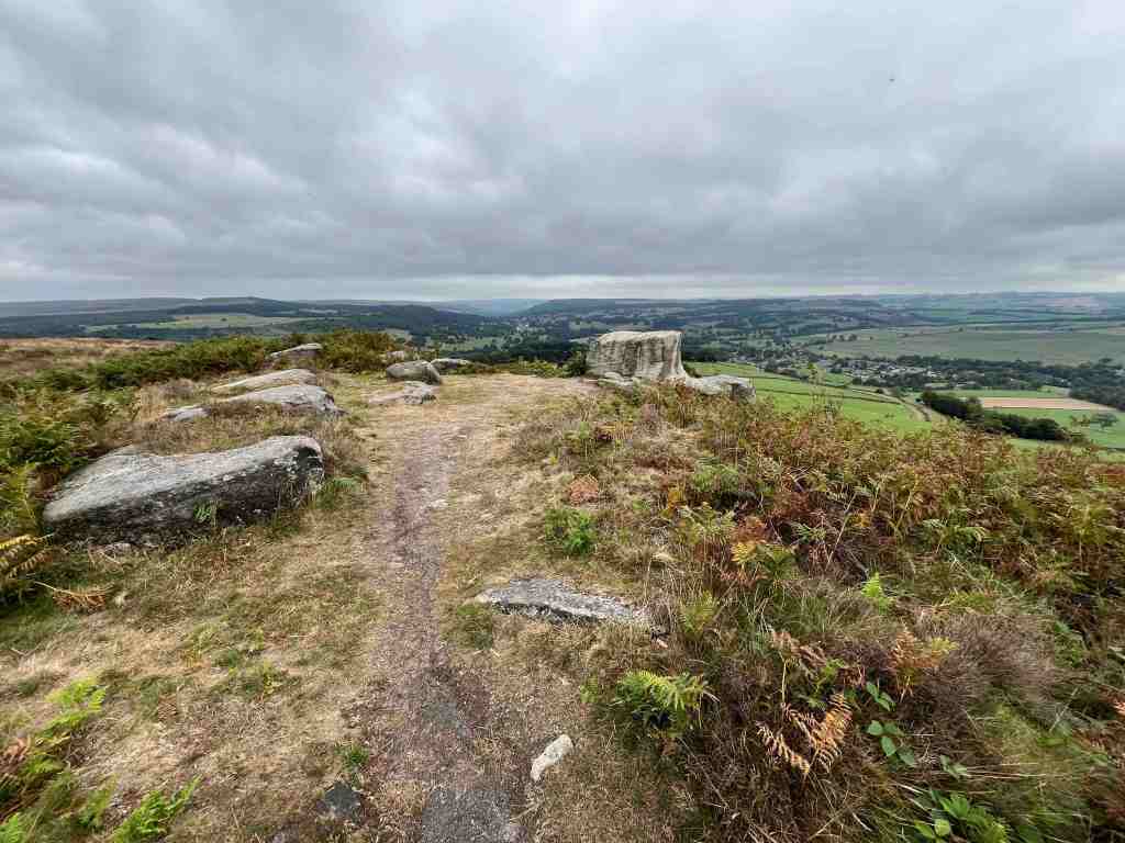 This path emerges after about a mile of walking; it is signposted but it is quite unspectacular and you could easily miss it. It descends on a moorland path to go under the start of Froggatt Edge. These are massive boulders where you can practice rock-climbing, or stop for a picnic to admire the view. The rocky path goes steeply downhill for about a third of a mile, and this requires attention. It’s one of those paths that is better going uphill. Having said that, it isn’t especially difficult – just take care.