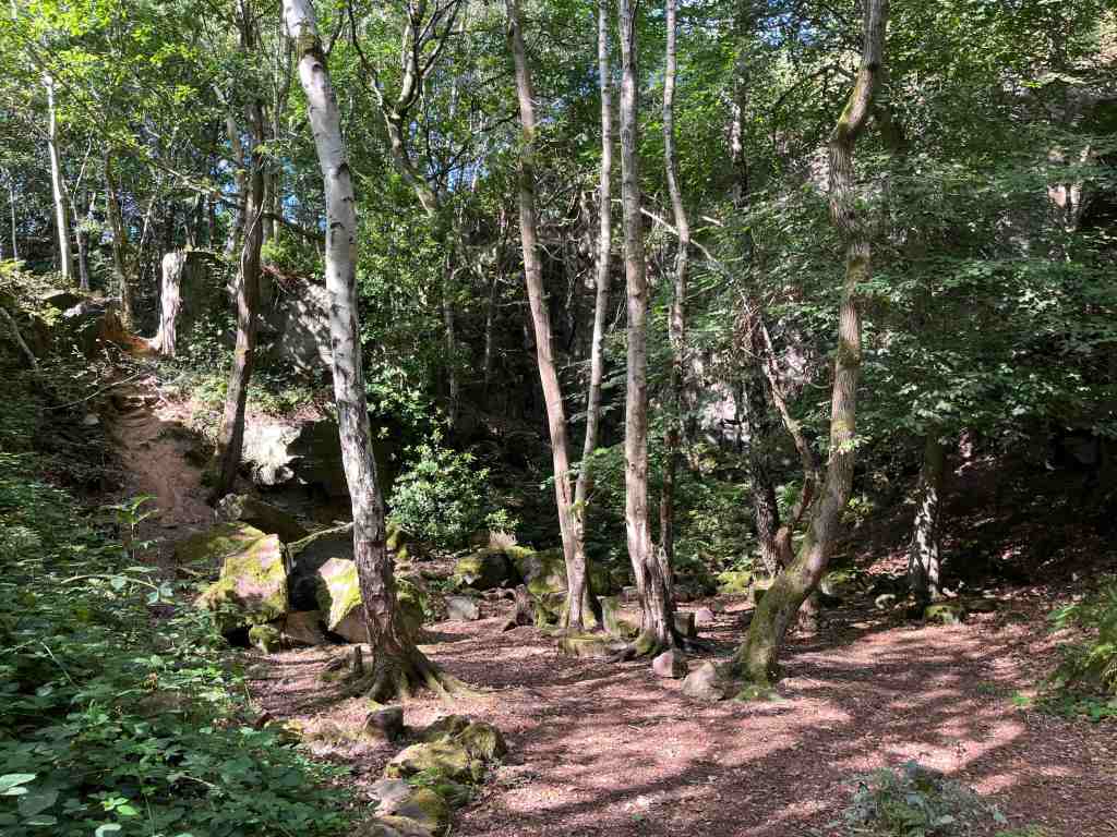 Taking the first of my August walks, this was a gorgeous walk along two of the Edges in Derbyshire. I began by parking at Curbar Gap (free to anyone with a National Trust membership). Walking north along the edge, this is a delightful and very easy stroll along the top of the ridge, with tremendous views. You can either follow the main path, which is wide and sandy, or you can walk along home-made paths darting between the boulders on the left, the latter being my general preference. You can follow this ridge all the way over Froggatt Edge to the Longshaw Estate. I, however, was looking for the path that would take me under the ridge and curve back to take me through the woods to Curbar.