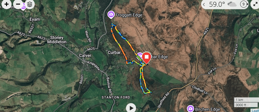 If you have had enough, you can stop here; but I would recommend going onto Baslow Edge. You might think you’ve seen all there is to see, but I find the viewpoint here is more interesting and you can see further to the south. There is a picture board, showing you everything you can see from here. It is easy walking most of the time, although you will go on a narrow and slightly overgrown and bouldery path if you continue on to the Wellington Memorial.