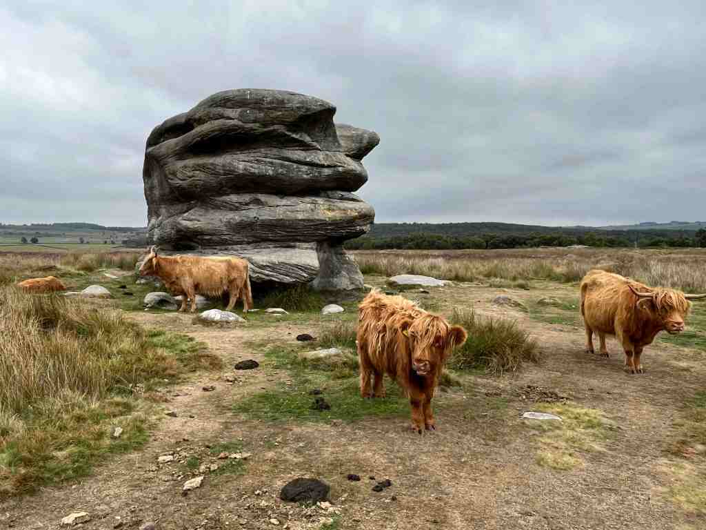 From there, you can take a different path back to take a look at the Eagle Stone, which is an incongruous mound of stones in the middle of the moorland, well favoured by the cattle. From here, it is an easy back to the car park. This second 2 mile section is extremely flat and accessible for most people.