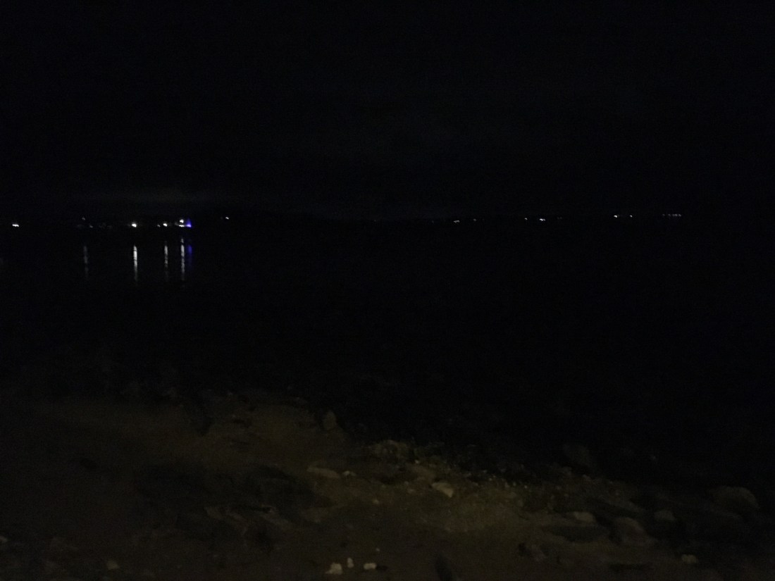 It was a very pleasant evening, not too cold and certainly dry, and in any case I was wrapped up warm. Having popped in at the Coop, I smuggled my carton of milk into my coat and went for evening walk onto the beach at Port Erin. There was no moon and as I don’t believe in using torches unless absolutely necessary I did splosh my way through several puddles and trip over the occasional pebble. The tide was quiet tonight. I walked up to the breakwater and noticed in the far distance a greenish light appearing every few seconds and I realised this must be a beacon from a lighthouse in Ireland!