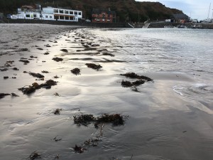 Today our postal workers are on strike, so I didn’t have to wait in for any spontaneous delivery. Instead, I decided to take a tour of Port Erin and deliver some of my Christmas cards by hand. You can tell winter is knocking on the door. The drafty winds and grey skies speak a thousand words, so I wrapped up warm in my cosy handmade scarf and hat and set out. Each day is so different; each tide brings in new spoils and smooths out the rough edges on the beach. Each day the sky changes, and even areas across the sky appear to send out different themes and messages. And in between the grey and white clouds, the silvery glows across the sea and the specks of sunshine, even the moon, all make their personal claim to the sea and sky. These stories are told in the photos below, so even if the walk itself was nothing remarkable, the skies let you in to their secrets and make every walk special.