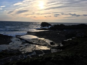 The tide was out, so here was an opportunity to walk along the beach to Fishers’ Hill. I began to regret it as there was a strong easterly biting wind constantly battering my face and the mixed terrain was lop-sided and uneven to walk along, but there were joys to be had in the many fossils I stumbled across and the wonderful light shining on the sea. I regained my normal speed once on the track going around to Scarlett, detouring from time to time to find a new angle on a walk I have done many times before. If you have never walked this, this is one you should find time to do.