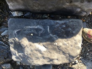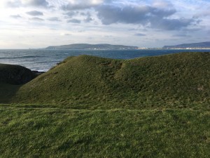Big boulders, little boulders, coarse-grained sand, smooth sand; pebbles galore reminding one of Dorset’s Chesil beach, just as arduous to walk along, but only one mile instead of many. Deep wedges of seaweed, troughs made by meandering streams, fossilised corals and even remnants of a bird trapped within the confines of the limestone; vesicles made in the rocks by tiny organisms or were these holes evidence of gas trapped in the volcanic eruptions in Castletown bay? Who knows?! All this in a short 7 mile walk from Port Erin to Castletown, not to mention the ancient historical monument of Close Ny Chollagh and the Giant Steps created in the limestone nearby. There were mandatory cows at Pooil Vaaish Farm who stood to attention and waited politely for me to pass by – age before beauty :-). For those who are new readers, cows feature in many of my walks one way or another!