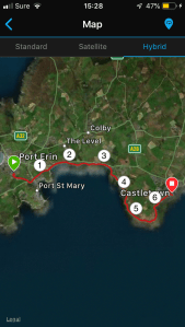The walk began along Truggan Road behind Port Erin, leading towards Port St Mary. My first port of call was a house on Beach Road, followed by another a short distance along Shore Road. Here I couldn’t find the letter-box, so opened what I thought the porch door to find myself in their hall which was decorated with a very fine Christmas tree. I didn’t see the owners, but I do apologise for the intrusion.