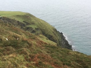 I had barely gone a few steps when I saw a pied wagtail, and a little further on, where I stopped to take the photo of Peel, a stonechat, both engrossed in their own activities. After that, it was mostly sheep as you will see.