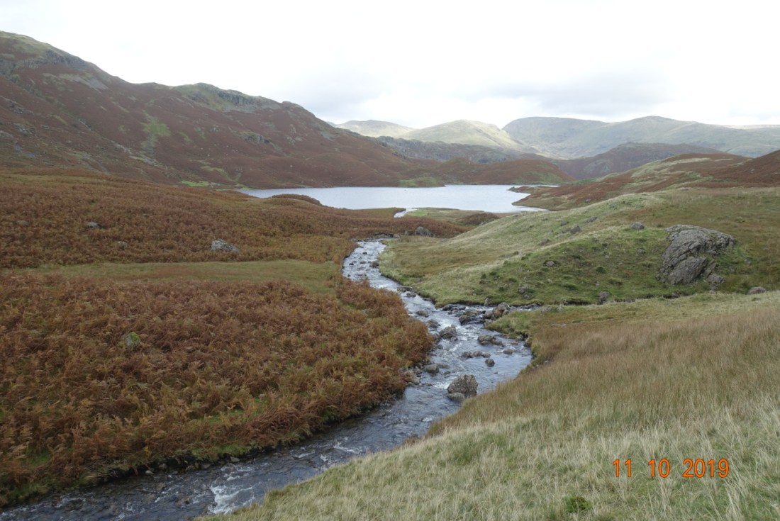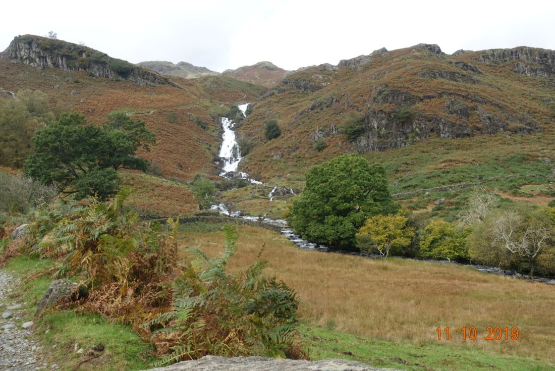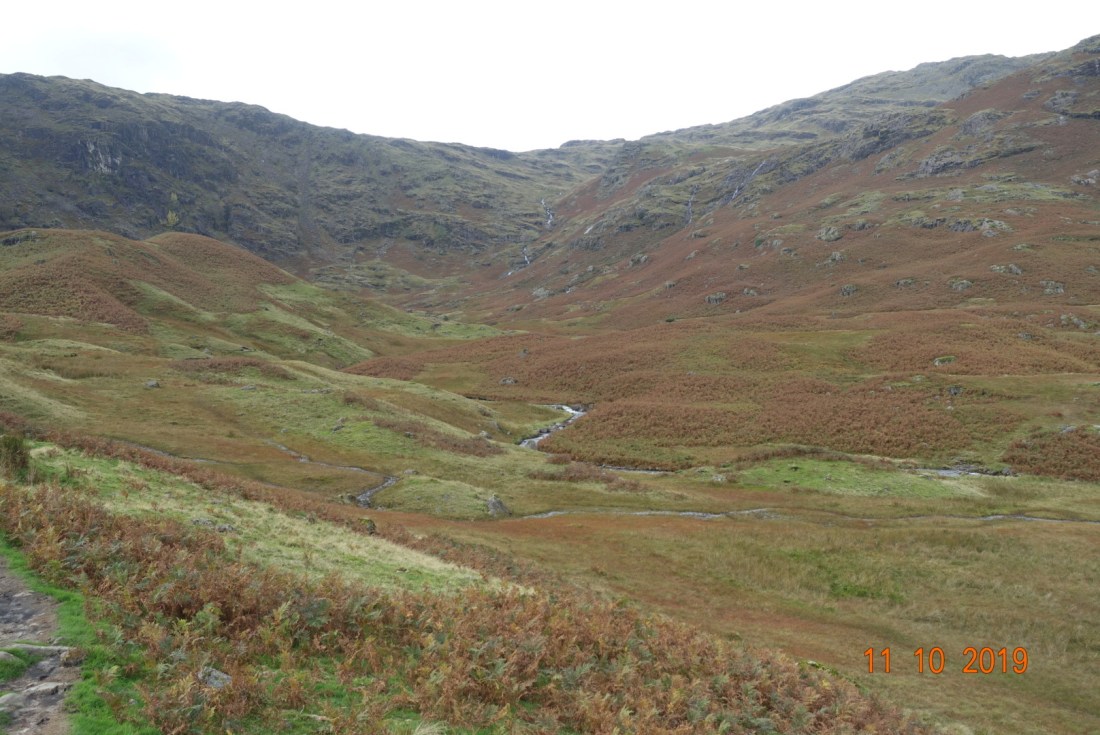 As you look up towards the first waterfall you could be forgiven for expecting the water to be flowing directly from Easedale Tarn, but instead you reach a plateau of small glacial humps, up to the next lesser waterfall. This viewpoint affords and extensive view of the valley.