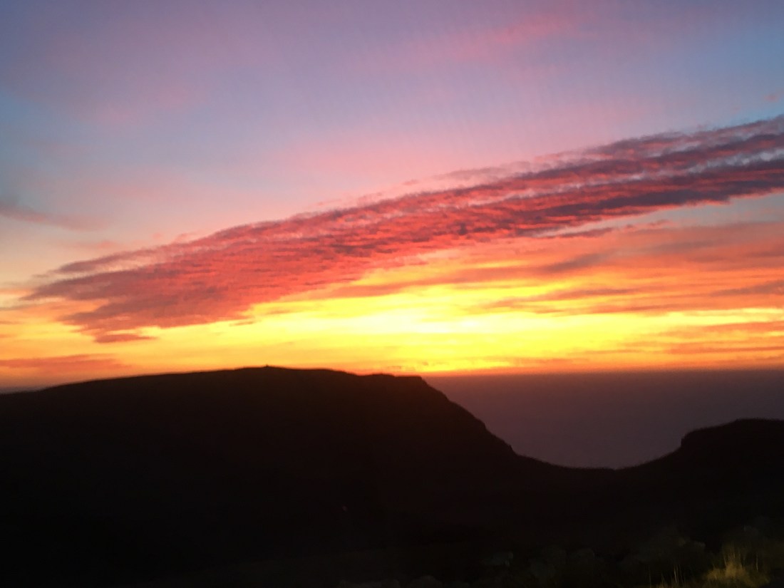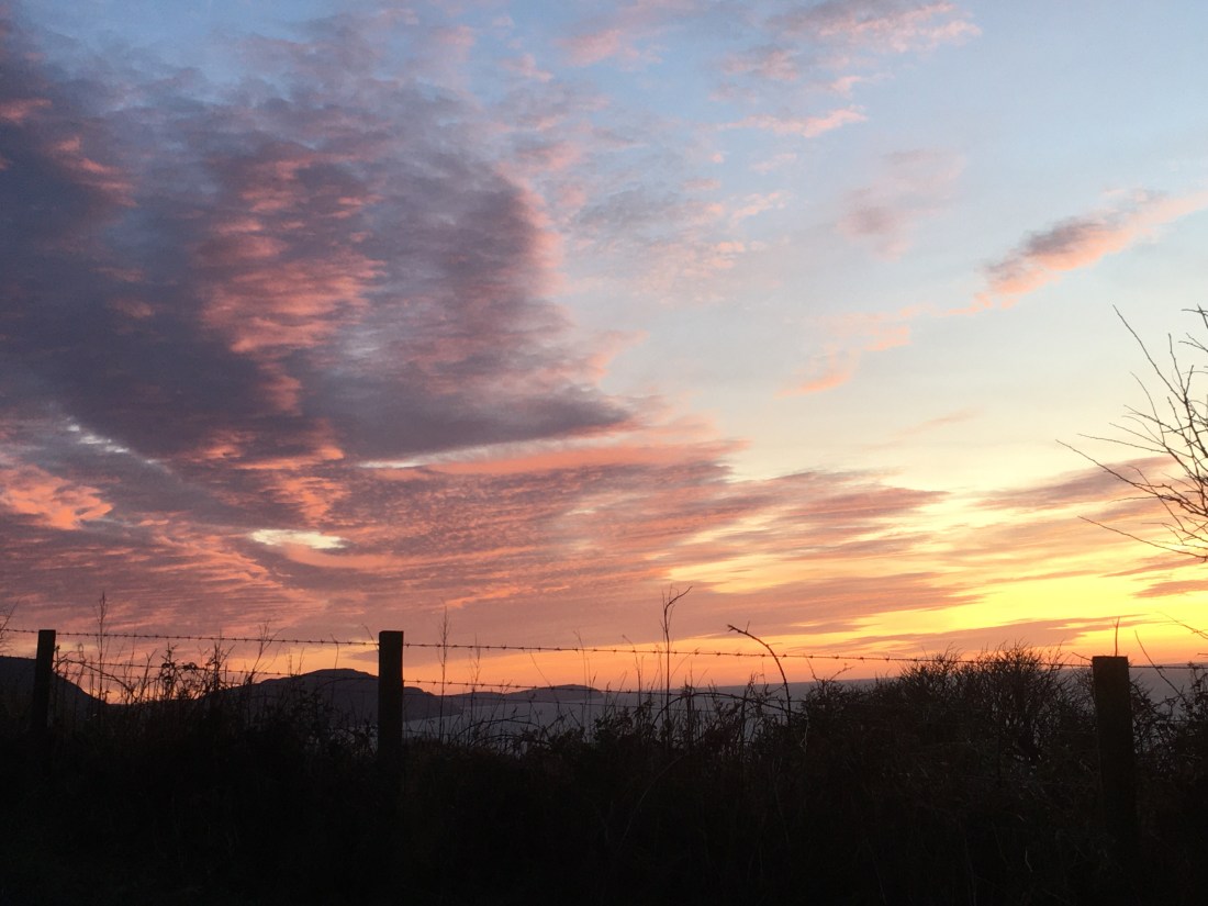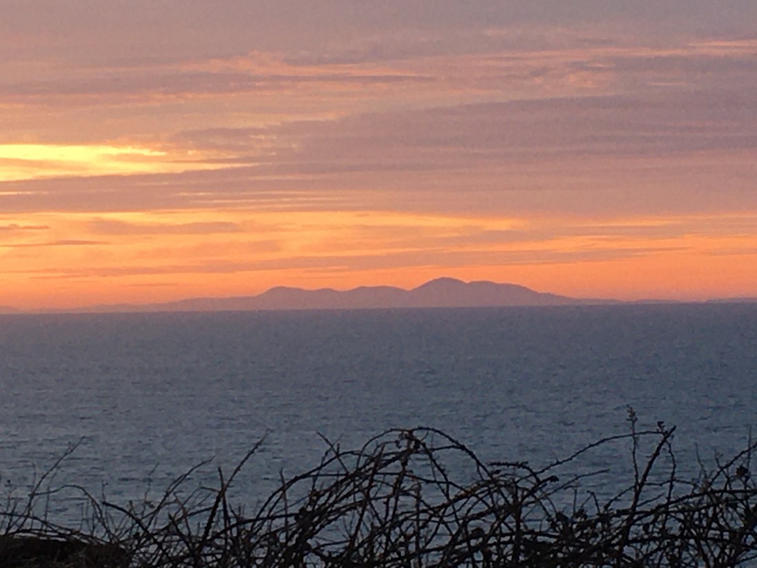 What is more uplifting than watching the sun set on hills and coast? I was travelling back from Peel, a journey that usually only takes 25 minutes, but I was so mesmerised by the colours and shapes on the skyline it took me over an hour to get home. Here are some of the photos taken with my mobile, often from the car. The hills across the water are the Mountains of Mourne in Ireland, the distant cliffs and hills are from Niarbyl to the Sound, Cronk Ny Arrey Laa, and the pinker sky on other photos is mostly over South Barrule.