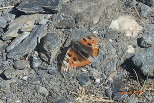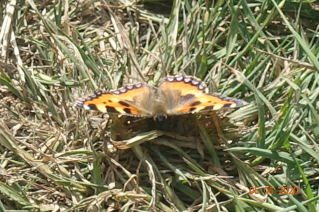 Walking through the village, I followed the road down to the top of the golf course, which looked rather dry. Our island has been rain-free for months to such an extent that a hosepipe ban is being introduced tonight. On reaching the cliff top I decided to take my third new footpath down to the beach. The tide was out and the landscape again looked quite dramatic. Other people have described this as a steep path, but it is quite simple really and if you must have a rest there is a bench towards the top. I spent a happy few minutes watching butterflies on this path, as you will see in the later slideshow.