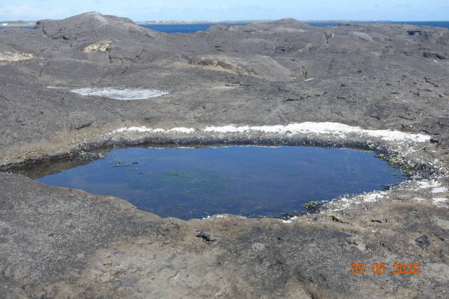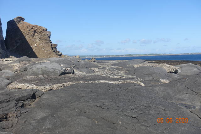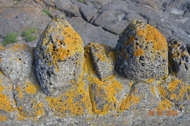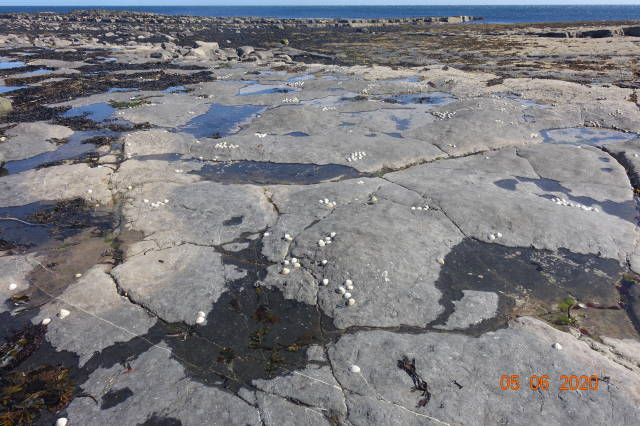 Keeping to the top of the cliff, I arrived in Port St Mary and pottered about on the very extensive rocky beach. Many times you wouldn’t know these rocks are there, as the tide comes right up to the grassy shoreline, but today the tide was right out. There were some interesting rock formations and the seashells made strange groupings on the rocks as if to protect themselves. They looked as if each little family grouping was social distancing from their neighbour. There were some wonderful colours made by the different seaweeds and sea anemones. The rock pools were quite deep and clear so the animals could be seen in full view without having to fish around and move seaweed to see them. There was also a lot of evidence of what I think are coral fossils.