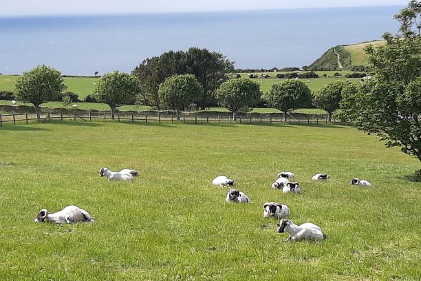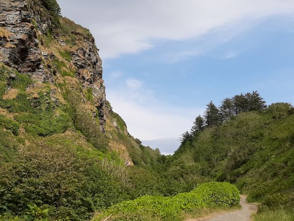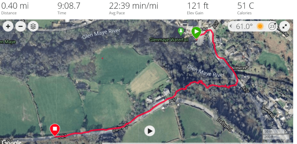 That part of the walk was 3 miles with over 1100 ft of ascent. I then drove to Glen Maye expecting it to be busy, but it wasn’t. I have always taken the well trodden path to the waterfall and then down to the beach, but I knew there was another path that I hadn’t taken once since I have lived here, so I walked down the road a short distance and then crossed over to take the steep and relatively short path up to the Dalby Road. It completely bypasses the waterfall, so there is no point in taking this path if you want to see the waterfall without much of a walk. I then followed the road round a couple of bends before taking the coast path on a soft and springy path leading all downhill and eventually to the beach at Glen Maye. It wasn’t quite as windy here. I only saw one human family where the children were having fun dropping stones off the bridge and two families of ducks in the sea. The chicks were tiny and mum didn’t seem to bother with them too much. I have never seen quite so much seaweed on this beach!