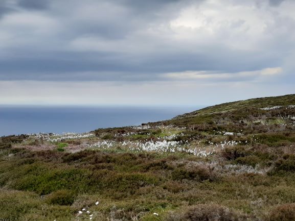 The highlight of the walk up was the streams of bog cotton hugging the moorland, or rather hanging on for dear life in the wind. They are visible as long strands from the road and they really do make the moorland look very pretty.
