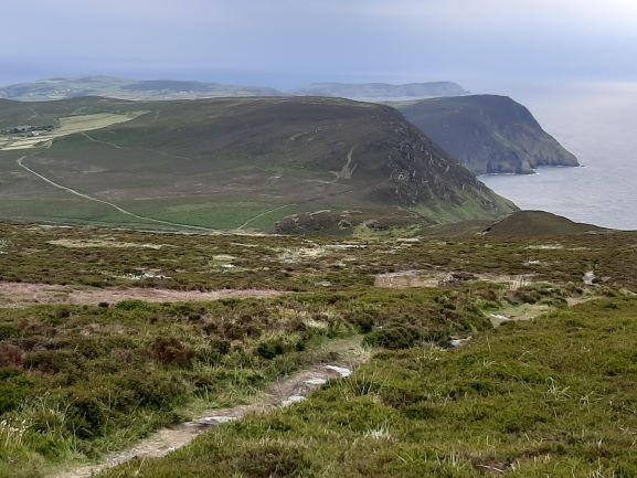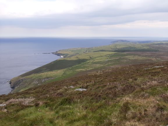 I started out with the intention of taking a slightly different route around Glen Maye. As I reached The Sloc, there were no cars parked and the hill looked so enticing that I parked up and walked up to the top of Cronk Ny Arrey Laa, and then contoured around the hill back to the car. This is a very simple route, though fairly steep. You cover 1000ft in the short distance to the top of the hill, but the good news is that it is all downhill after that – in the nicest possible sense of course. The path up is quite rickety and worn. It really needs a bit of maintenance. It is perfectly passable but you do have to watch your footing.