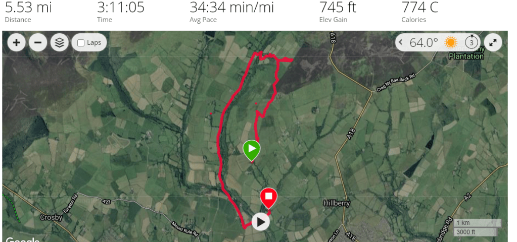 What a lovely way to reach 3000 views on my blog, if I do. Today contained a first walk and a frequent walk. Starting with the frequent: My friend and I met up for a short walk and as she needed to pop in the Scarlett Visitor Centre to check she had enough paint for the floor – don’t ask! We decided to park up by the quarry and then walk around Scarlett to the point where Janet and I had finished the other day. This accomplished we carried on, back past the quarry to Pooil Vaaish Farm. From from here we turned right along a designated footpath which followed the Dumb river – so called, we believe, because it makes not even a tiny noise, over the fields and back to the edge of Castletown. These little streams are one of the wonders of the Isle of Man. The edges of every one are bordered with a myriad of wild flowers and ramblers to adorn every season and to entrance all kinds of insects and living creatures which keeps the world in buzzing order. I won’t bore you with any more of this walk as it is one I have regaled on many a day. Suffice that I include a map at the bottom.