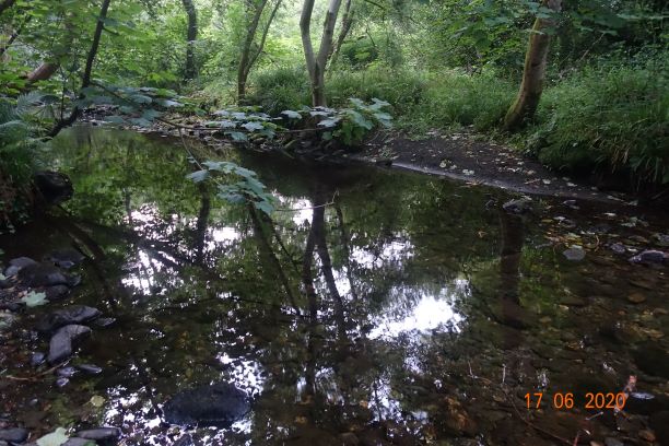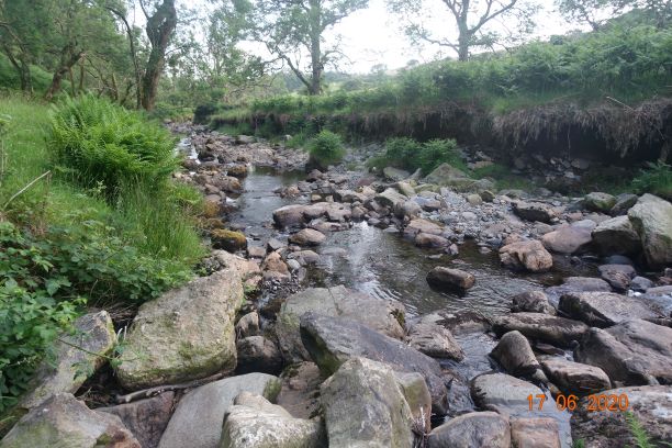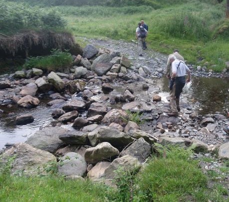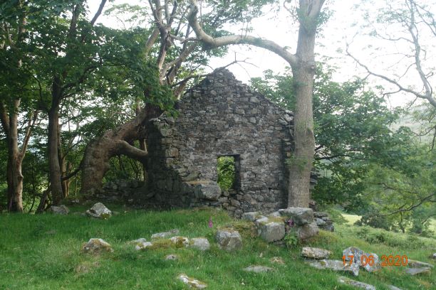 We descended on springy grass fields to the River Baldwin, dodging as many midges as we could. Just before this point we reached an old farmstead called Arderry, which began with the Quine family in the 1500s and was later divided up and the southern Ohio residence (where Joe Lewin’s tower is) was given to the Creers and the main dwelling and outhouses at Arderry remained in the family. It was originally leased to the tenants by Rushen Abbey and they used to pay a tithe to support the Nunnery in Douglas. The remains of Arderry which has streamlets flowing either side of the residence that would have provided a good fresh water source is only yards from the lowest point in this walk where there is a small ford to negotiate over the mighty River Baldwin, but given its proximity to the source of the water and our recent lack of rain I doubt that it often causes problems to traverse it. It was just after this point that I left the walkers where they would pick their cars and I followed the road all the way back to Abbeylands.