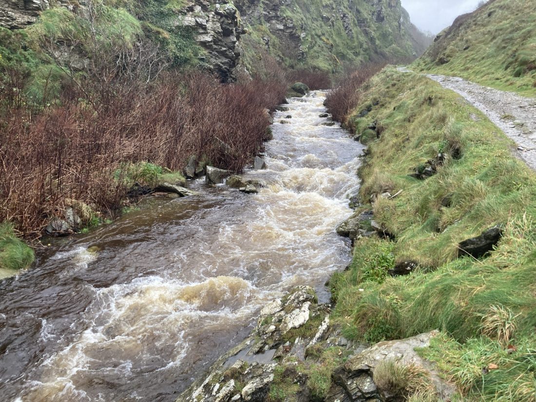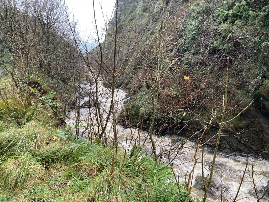 What a joy to enjoy this area and have it all to myself – I can’t imagine why! – and to see the swollen river rushing down little alley ways and bubbling furiously over rocks and stones. Having reached the beach and already soaked I didn’t hang around and went back to join the track that goes into the main glen. There were a few places where the waters were more gentle and every now and again it would surprise me with sudden spurts and mini waterfalls that are never usually present.
