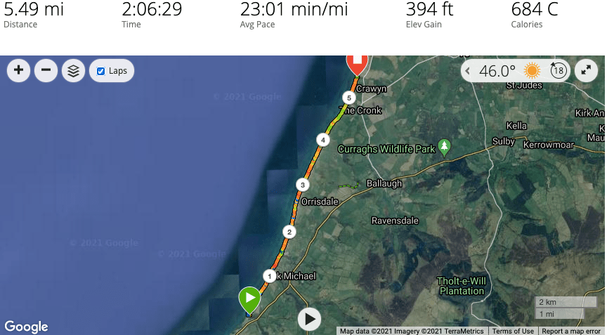 I had a choice at this point, whether to walk along the road or cross over and walk along the heritage trail. I opted for the former and was pleasantly surprised by the number of wild flowers growing on the wayside, which made up for the constant noise of the traffic! Another time, I would probably take the heritage trail, but as my route was northwards at Ballacraine, it seemed sensible to keep things simple. However, it was over 2 miles on road. It’s worth keeping in mind that there are buses along this route so if you have had enough of walking, you can wait for a bus instead of taking either route.