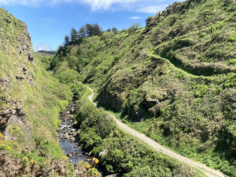 I followed it left down to the tiny hamlet that has its own glen. There is a ford here, but the footpath neatly avoids this. From here, simply follow the now tarmaced road to Dalby and back down the drag to Niarbyl itself. There is a cafe here, and there are amazing views to the south from here on a good day.