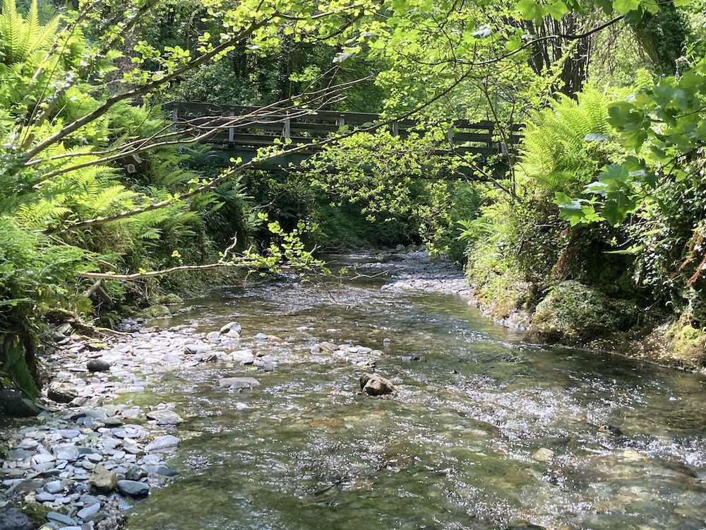 I hadn’t expected anything in particular, but it turned out to be a very special hour in the glen. The leaves were a vibrant green, and the sun caught the edges of the leaves and created reflections in the water I haven’t seen before. As we haven’t had a lot of rain recently, I was able to scramble down the bank into areas I don’t usually visit to get unusual views. In addition, the birds were singing loudly and the wind whistling through the trees.