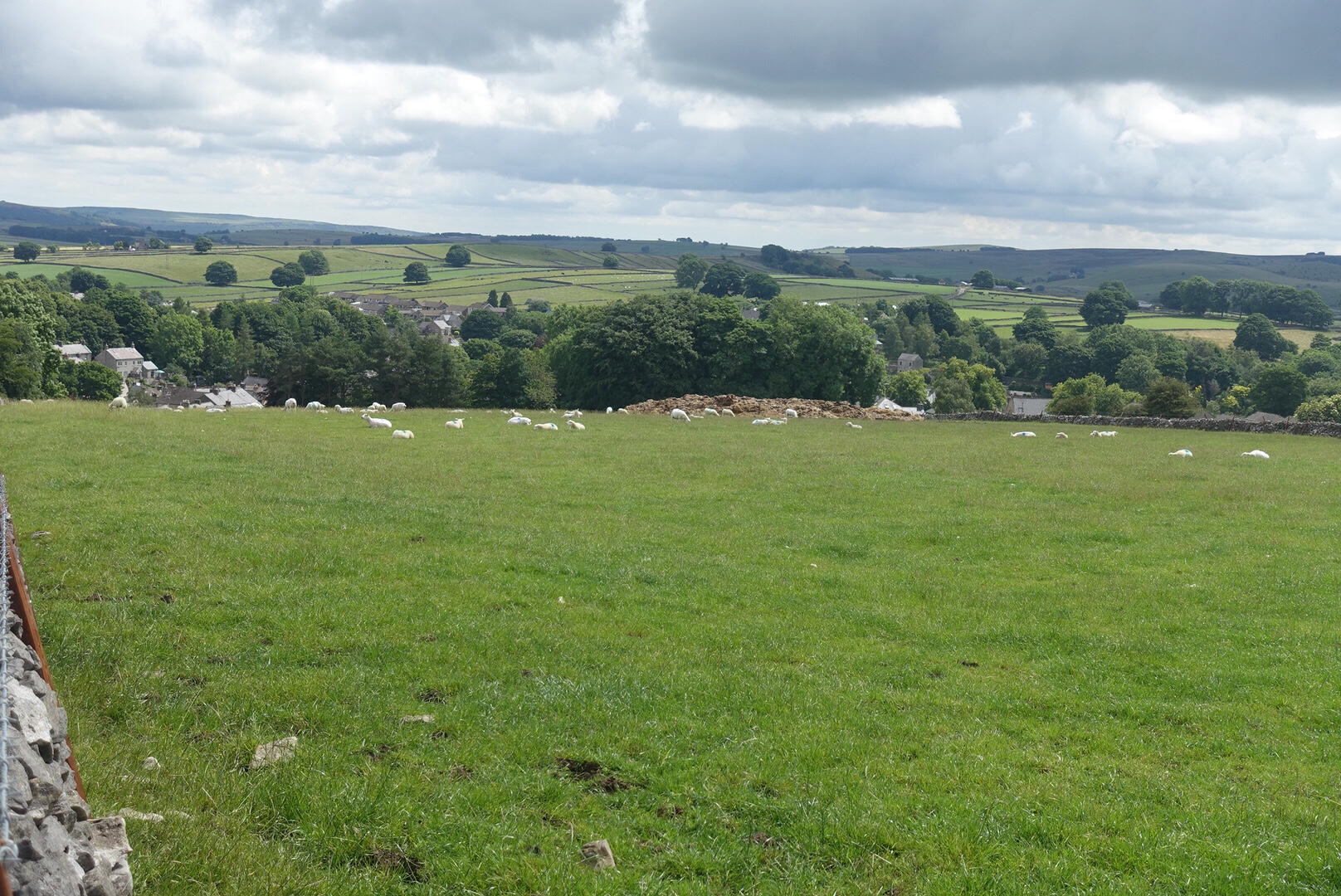 I have really enjoyed my few days in Tideswell. The countryside is a perfect example of the UK’s traditional green and pleasant land and it has a timeless feel to it, despite evidence all around of progress and technology, in the forms of masts and wires, a variety of road signs, and cars parked in every nook and cranny on the streets, at least in the old part of the village where the houses were originally built for living rather than housing transport. Some of the properties are very old and opposite the church is a house whose front door is dated something like 1542. What stories that house would be able to tell.