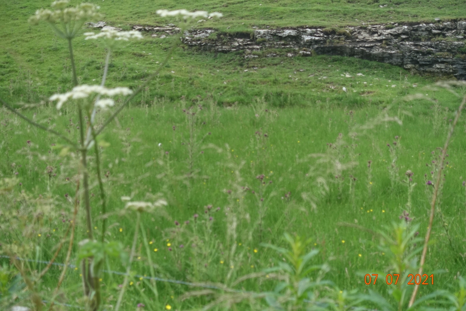 I had selected a particular road route because I was hoping to avoid mud for once, and the map showed the road descending between two hills, but in reality that was misleading, although the route was still very pretty and it was almost a dale in itself, with a small stream and meadows of wild flowers alongside the road. I turned off the road to take a very straight track that leads to Wheston. This was wide and easy to walk on, and it followed the top of the hill so the views were wonderful. I had to wait while a tractor went past as there wasn’t room for both of us. Wheston is only a very small hamlet but does lead to the entrance to Peter’s Dale, a dale I have not visited on this occasion but shall do another time.