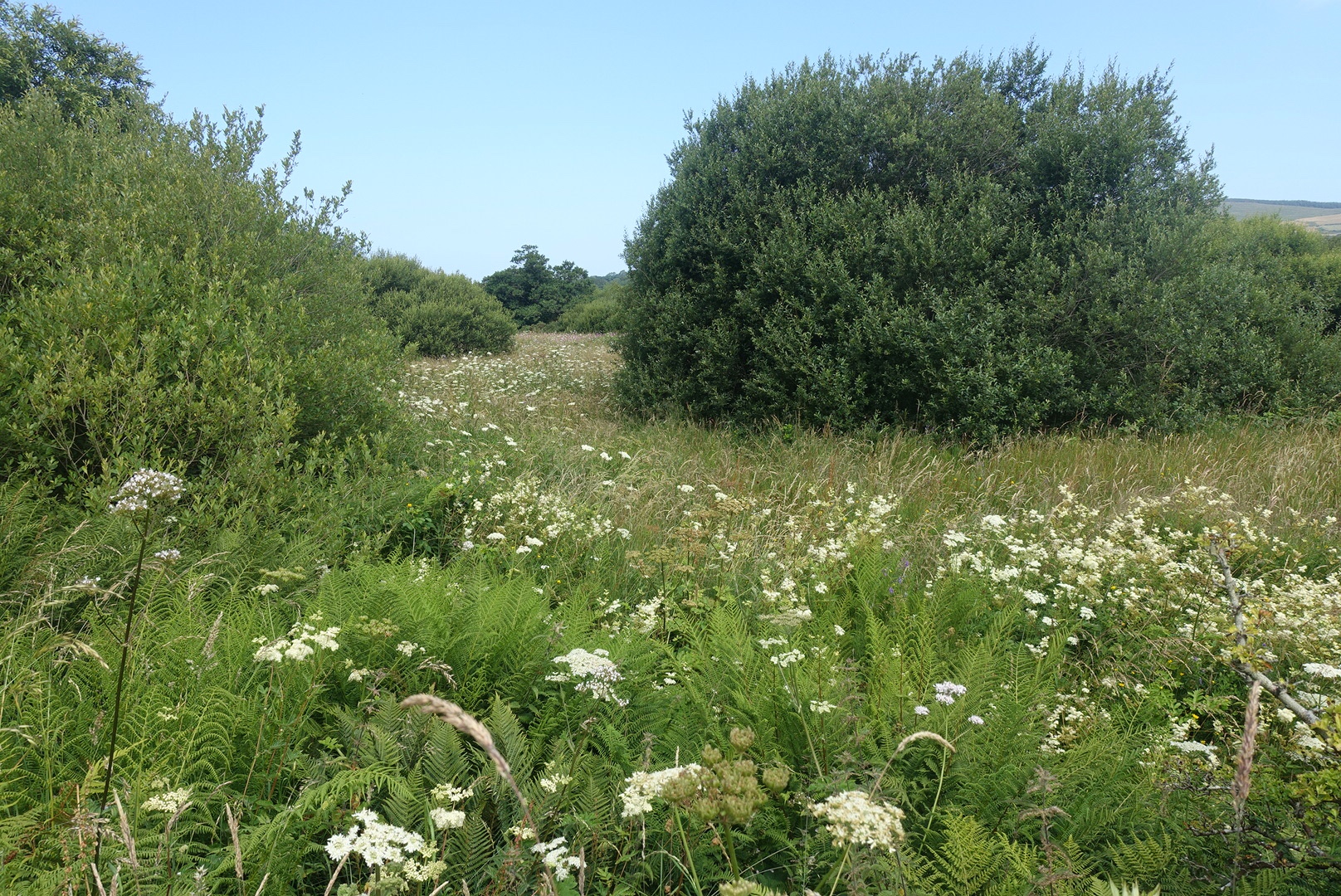 I started at St. John’s and walked in an easterly direction along the railway track for about a mile. This is naturally flat, but this section isn’t especially inspiring, although some of the wildflowers waving in the fields looked magnificent. I crossed the Ballamodha Road, where there is an old station building and walked to the next road junction on the outskirts of Greeba. Here I turned right up the lane for a short distance and then the path leads off to the left. I had never walked this track before and it is very pleasant, providing excellent views of Greeba Mountain.