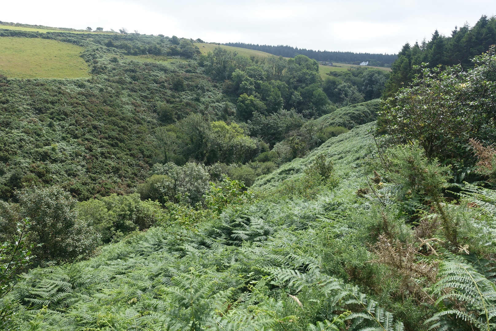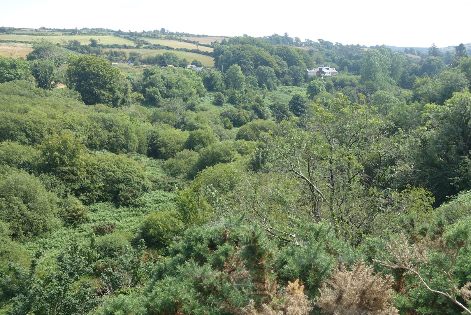 It is an upward path for about a mile, but not difficult. The highest point is 656 ft over this distance. It is a gentle slope on the side of a valley that eventually takes you to the Cornelly Mines. This makes a good coffee stop, and you can climb the stile and peruse the site if you wish. I declined this invitation, walking past the mines to go into the Archallagon plantation.