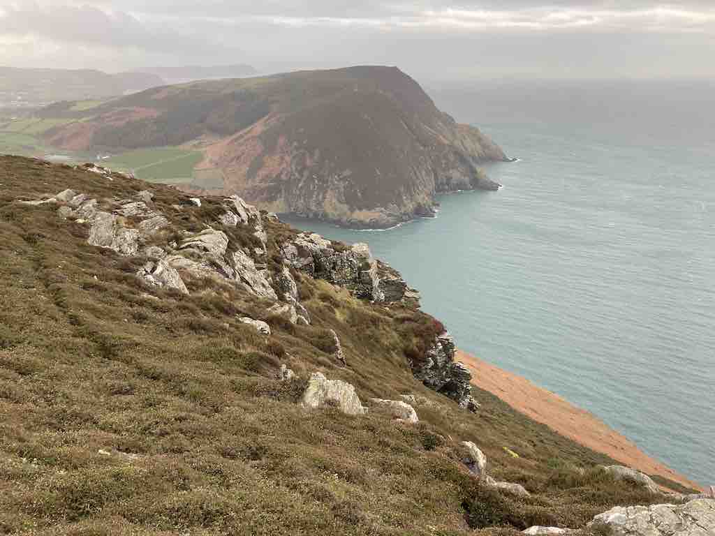 This walk always reminds me why I live here. It is just a stone’s throw from my house and within minutes I am atop the Carnanes perusing wonderful vistas in all directions – that is, on a good day. Today, it was misty and a little windy but even so it still holds its magic for me.
