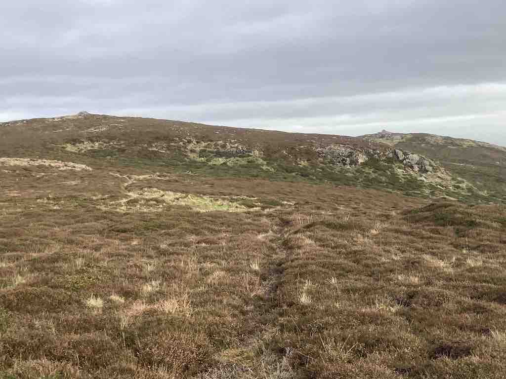 I parked at the southern car park on the back road to Peel just above Port Erin. I immediately noticed that the Manx Woodland trust have planted more trees in the car park area. They have done a great job this year reforesting parts of the Carnanes. I walked up the road a little, crossed over onto the moorland. It was very quiet today, hardly any cars or people; in fact, I didn’t see a single person in the two hours I was out today. I had the hills, the sky and the views all to myself.