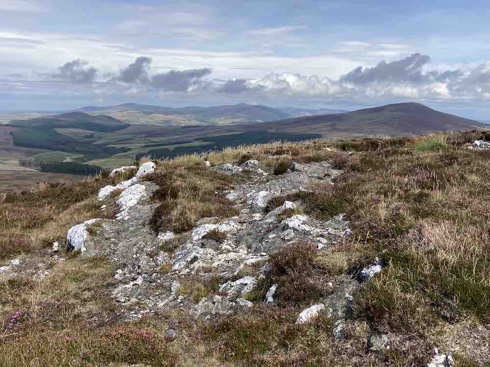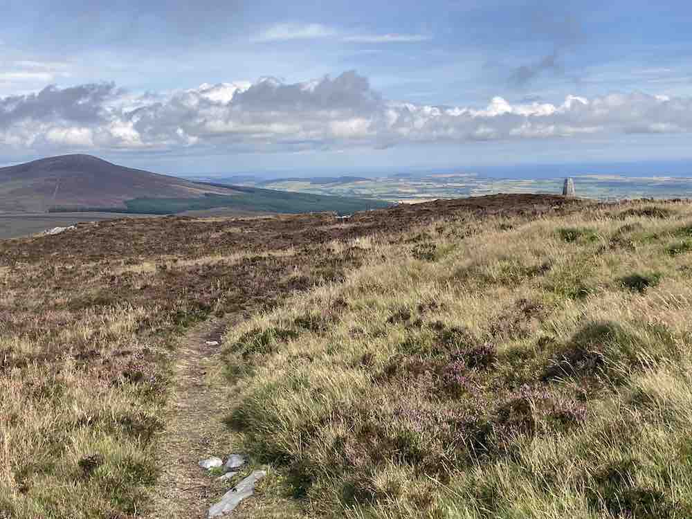 At this point, I decided I may as well walk at a reasonable pace as they were clearly not going to catch me up. When you leave the river, the map suggests you take the soily path through the gorse, but in fact you need to go the other side of the wall to the top of the hill. I didn’t, so had to scramble over the wall higher up. There is then a helpful signpost telling you to go left. This is flat easy walk through heather with great views. The path here is well defined as long as you don’t believe it all the time. I realised pretty quickly that it was bending the wrong way after about half a mile, so I did some trail blazing (not as grand as it sounds; it was easy walking) to rejoin it further east. You need to curve to the right away from the trees, so if you find yourself heading towards them higher up so have gone wrong. Maybe I missed a sign, I don’t know. Anyway, it is neither here nor there. It is easy to correct.