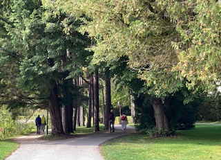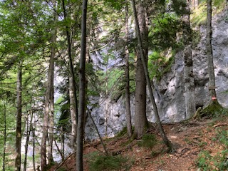 It was then time to make my way to the Bahnhof for the return journey. The waiting room had one last surprise for us – exceedingly comfortable and colourful seating. Well done to the designer – compare this with the uncomfortable slanting metal seats we have in the UK and islands bus stops. Once on the train, I really wanted to see where the lake must spill into the surrounding plains but I didn’t detect any outlet. I have since learnt that the lake used to be much larger, reaching as far as Salzach, and much of the northern end has been drained, although there are still swamp areas in places.
