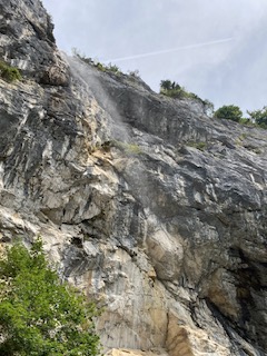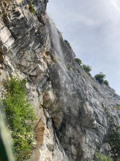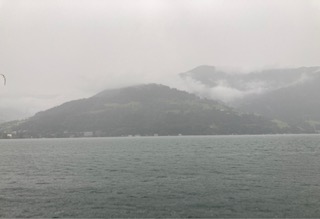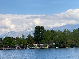 We did our own version of a watersport by taking a ride on the boat. This was enjoyable but at the same time unnecessary as you can see everything you want to see from beside the lake. However, the skyline was telling its own story. To the north, with its slightly lower mountains the sky was blue with puffy white clouds. To the south the clouds were grey and gathering and had a sense of foreboding; rain was clearly not too far away. For now though, it was bright if not hot sun, and warm enough to entice one into a lager.