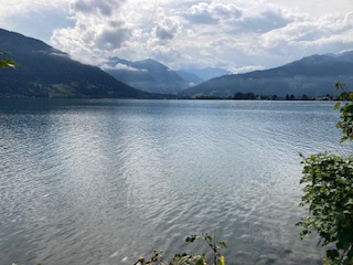 The day had a promising start, with sunshine, after a dramatic storm overnight with thunder and lightning that almost burst a few eardrums. We set off from Sankt Johann (nicely pronounced by the operator at the railway station) for our 45 mins journey to Zell am See. This is a most attractive high level ride for much of its route, meaning you have excellent views of the mountains and valleys. It moves quietly through one valley to another. There is no indication of a lake until you reach it – it comes as something of a delightful surprise. Indeed, if you travel by road, you can avoid seeing it at all!