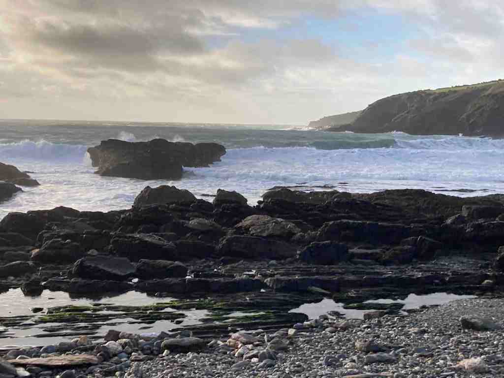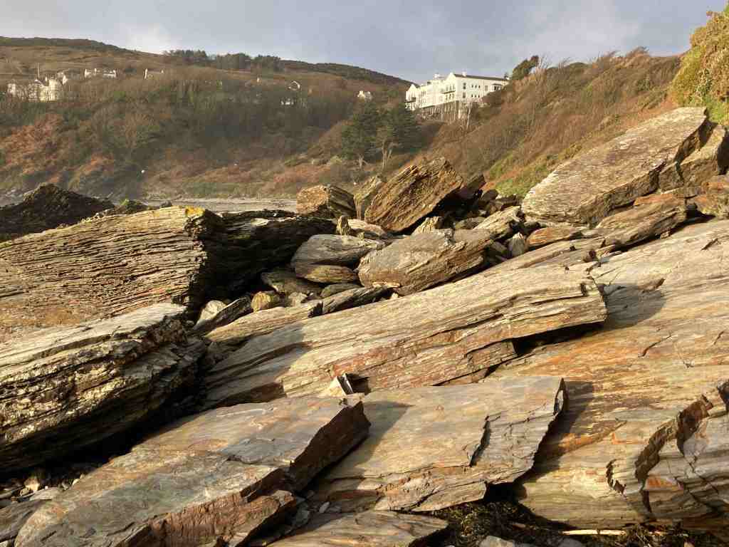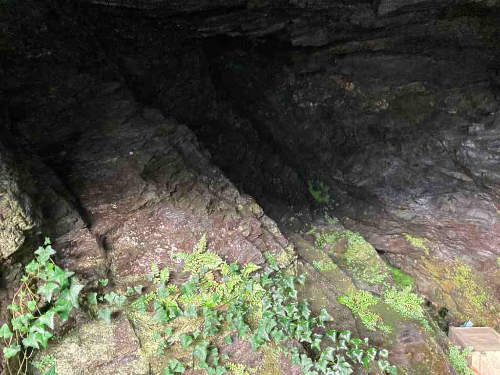 Again, you don’t need to follow the road very far. After about 100 metres there is a footpath over a rickety bridge that takes you just above the stream and to the side of the meadows. It has the air of an ancient path, that eventually reaches a junction where you can turn left to go back into the woods or right to go to the stream and the eventual waterfall. This path had a different air to it, with ramshackled stones bobbling about the path, which I expect will form a stream of its own in winter. At the bottom is an attractive set of stepping stones. I was met by two ladies saying to some young child playing in the stream to ‘mind the glass’. They knew this area well and for years had been finding remnants of bottles and some stonewear that looked as if it had melted. Judging by the thickness and colours of the glass, these fragments are probably 70-100 years old. It is a mystery why they are there. The ladies said, despite their research, they hadn’t been able to find a business or a pub etc further upstream that might have been their source. Who knows?