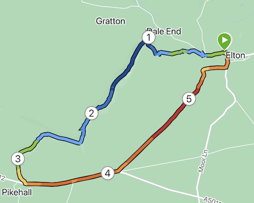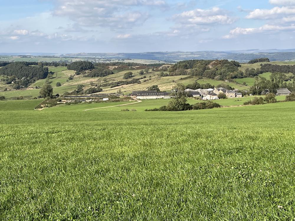 A few strides down the road and you come to a footpath sign, with two leads – one going eastwards and the other westwards towards the top end of Matlock through the trees. I took the easterly path, across fields and meadows back to Tansley.
