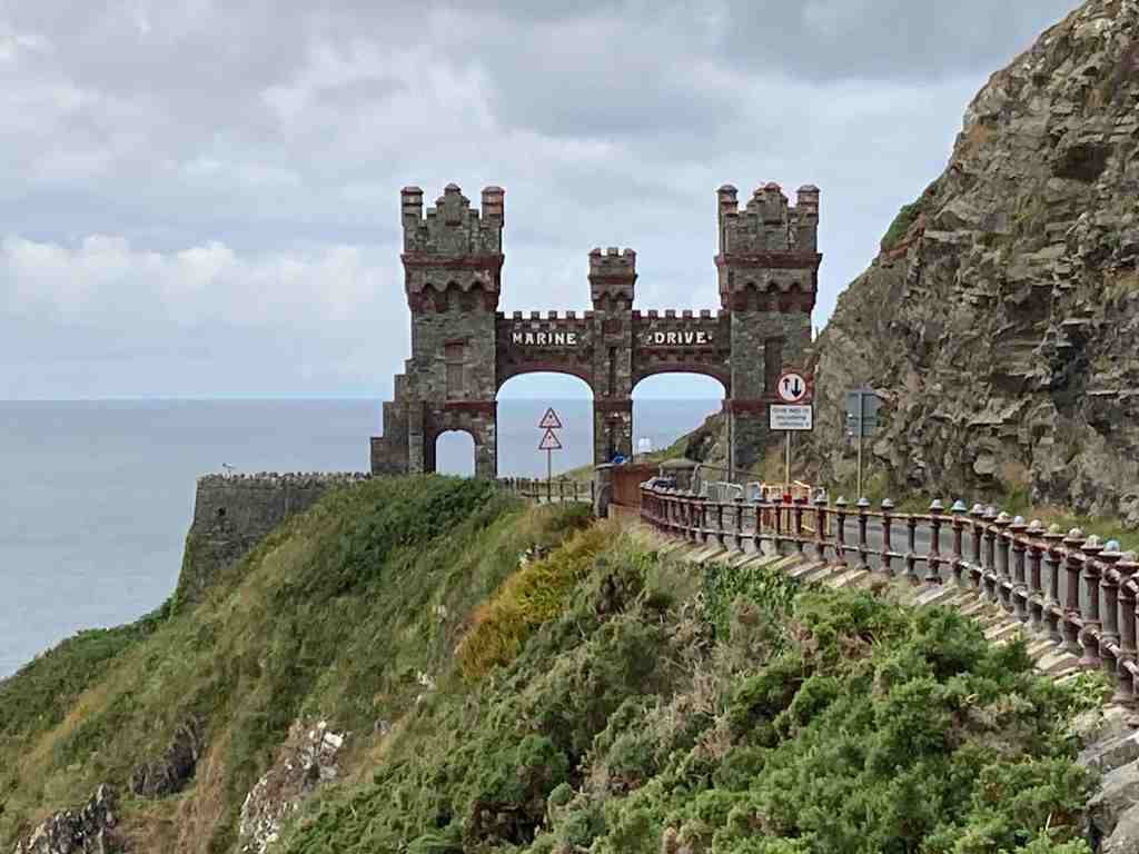 I commenced the walk at the Arch on Marine Drive. If you are visiting /using a car, there is plenty of free parking just the other side of this arch. Before that, parking is limited to 2 hours on the road. The first section is about 3 miles, along an old road so very easy walking, or also suitable for pushchairs or wheelchairs. You get fantastic views of the twisty rock formations and in places you can divert from the road onto grassy areas where you can rest awhile and look at the views or try to catch a glimpse of a passing porpoise (they are quite common here). On a good day you can see all the way down to the Langness peninsula.