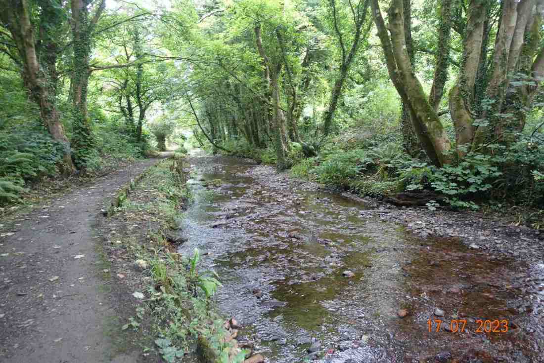 This is one of my favourite walks. It has such variety and breath-taking views. We began by walking through the Kerroodhoo plantation, which is a very pleasant path, keeping ourselves in the dappled shade as we made our way downhill. There were a couple of obstacles, such as steeply dropping paths and streams to cross but nothing too daunting. Towards the bottom end of the plantation a new woodland of deciduous trees is being created whilst the everygreen Norway Spruces are being removed as part of a community measure to improve the environment. The idea is to create more diversity and provide better habitats for three b’s – birds, bees and butterflies. New trees being planted include Birch, Oak, Alder, Hazel and Ash, all native trees that have been grown locally. It will be interesting to watch this develop in future years.