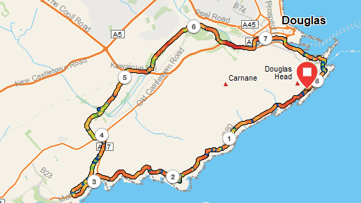 The last section is unavoidable road walking into Douglas, but it is not altogether unattractive, and just a little further along, you arrive at the Marina. There are plenty of cafes along the side of the marina where you can take a rest before the final short uphill section back to the car. This, too, has its rewards as Douglas Head has amazing views of Douglas and the northern hills. On the way there, you may be fortunate as I was today to see the new boat, the Manxman, in the harbour. I can’t wait to have a ride on that massive beast 🙂