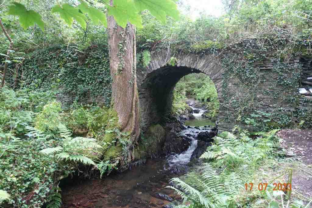 This path terminates at the old Castletown road, where we turn left and walk from a short distance a little uphill until we cross the road and take an unmarked footpath (it is on the map though) to another footpath junction. This is a delightful tree-lined path all the way downhill, and as you walk it you feel the centuries of feet that have trodden this route before. It leads to the real Fairy Bridge, which is slightly off the path. Once you have gone over the footbridge over the tiny ford, take a left immediately into the woods and follow the informal track and you will soon spot the bridge. But don’t stop there. It is interesting in itself, but take time to go over the top and down the other side. There is an area like a platform nestling beside the stream, which is relatively wide at this point, and you really do get a sense of fairies dancing in the shrubbery.