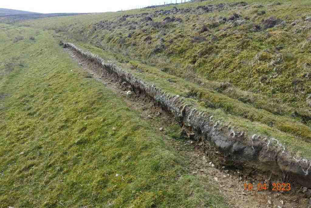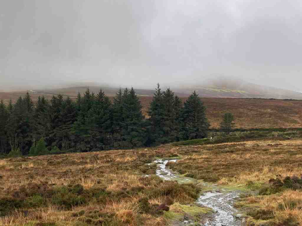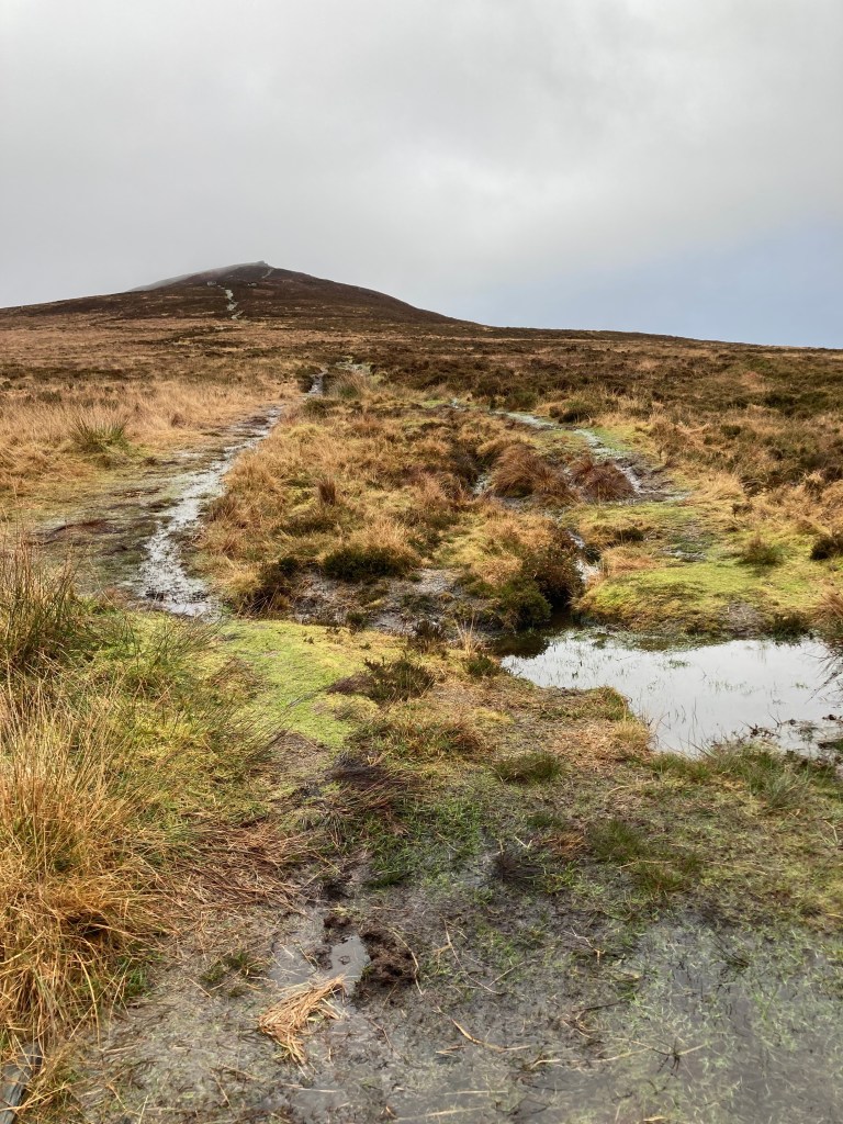 This was the furthest point for me today. I had already walked 3-4 miles, so I knew it would be the same amount back again. This time, I took the track to the south around the hills; this meanders very slowly all the way around the three hills but now, instead of seeing the big bullies of Barrule, we see the softer side of the hills as they gently roll down to the sea. We pass over the watershed again this time on the south side, where it has the name of Glion Ruy, red creek, which when you see it seems very apt. This track is not my favourite, as it is stony and awkward in places, but it is possible to walk on the grass just to one side most of the time.