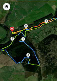 Distance 7.65 miles, Ascent 1194 ft; Descent 1161 ft. Min Elevation 483ft; max Elevation 1507 ft