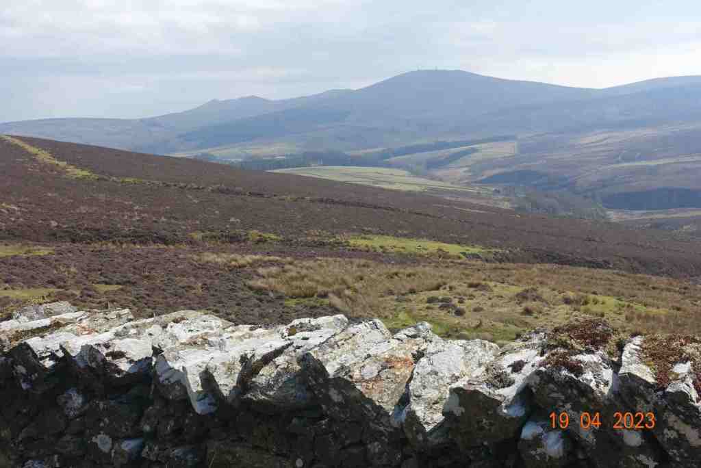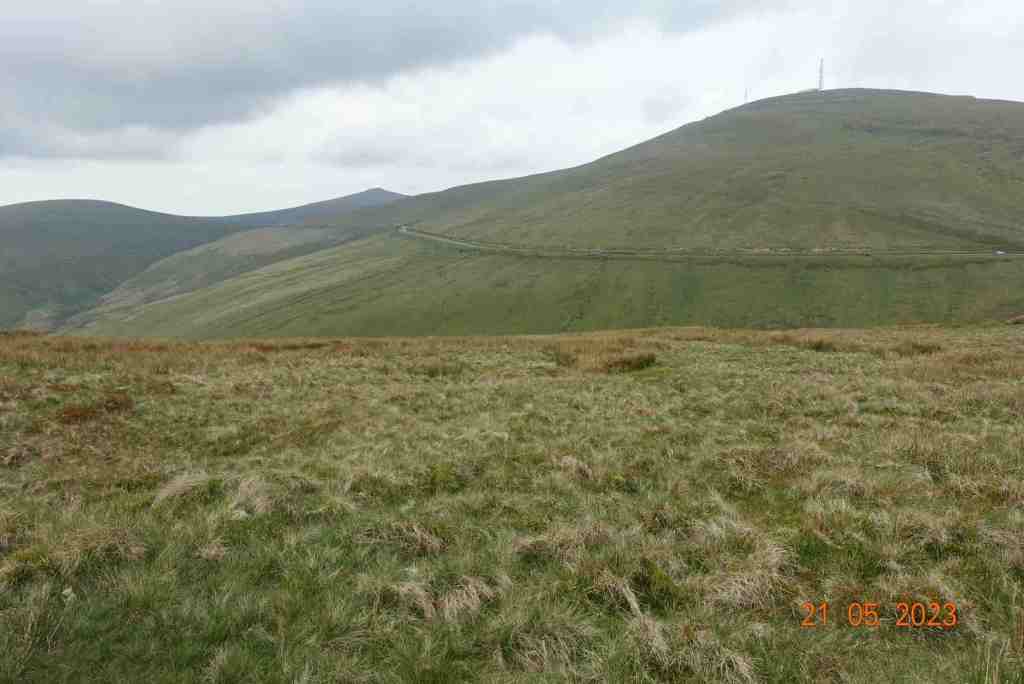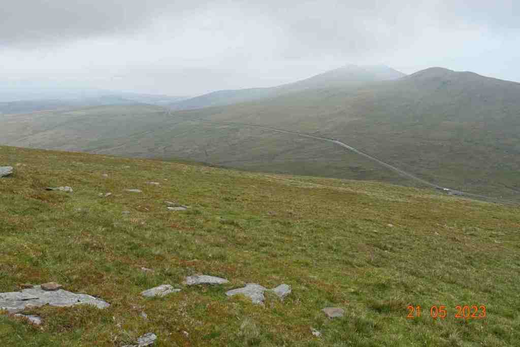 Today’s walk was part of a previous walk in reverse as I wanted to find out if there was a path or sheep track over the top of Slieau Lhean (469m). I parked the car on the minor road above Laxey before Ballachrink (which is actually the Raad Ny Foillan), and walked up the lane to where the right of way leads off onto the moors on the left.