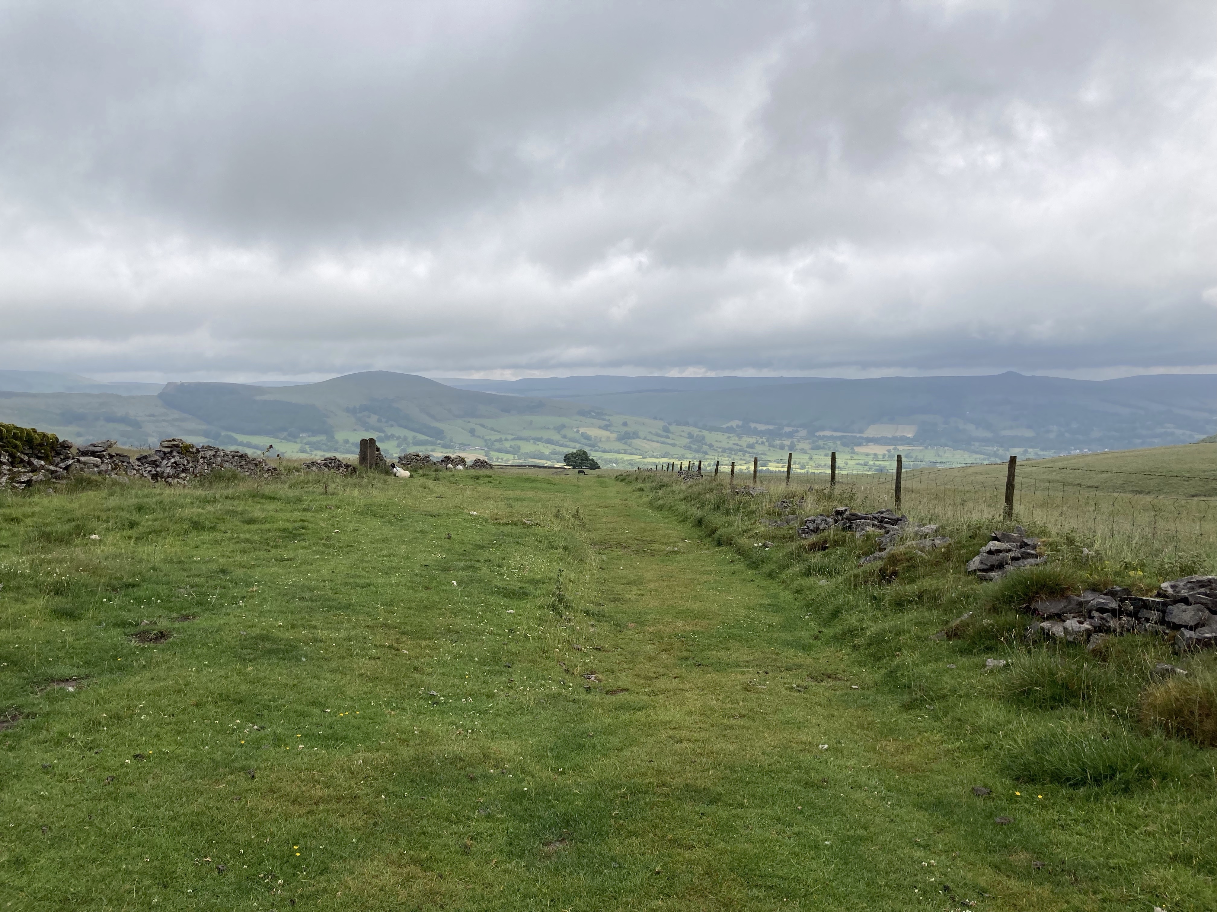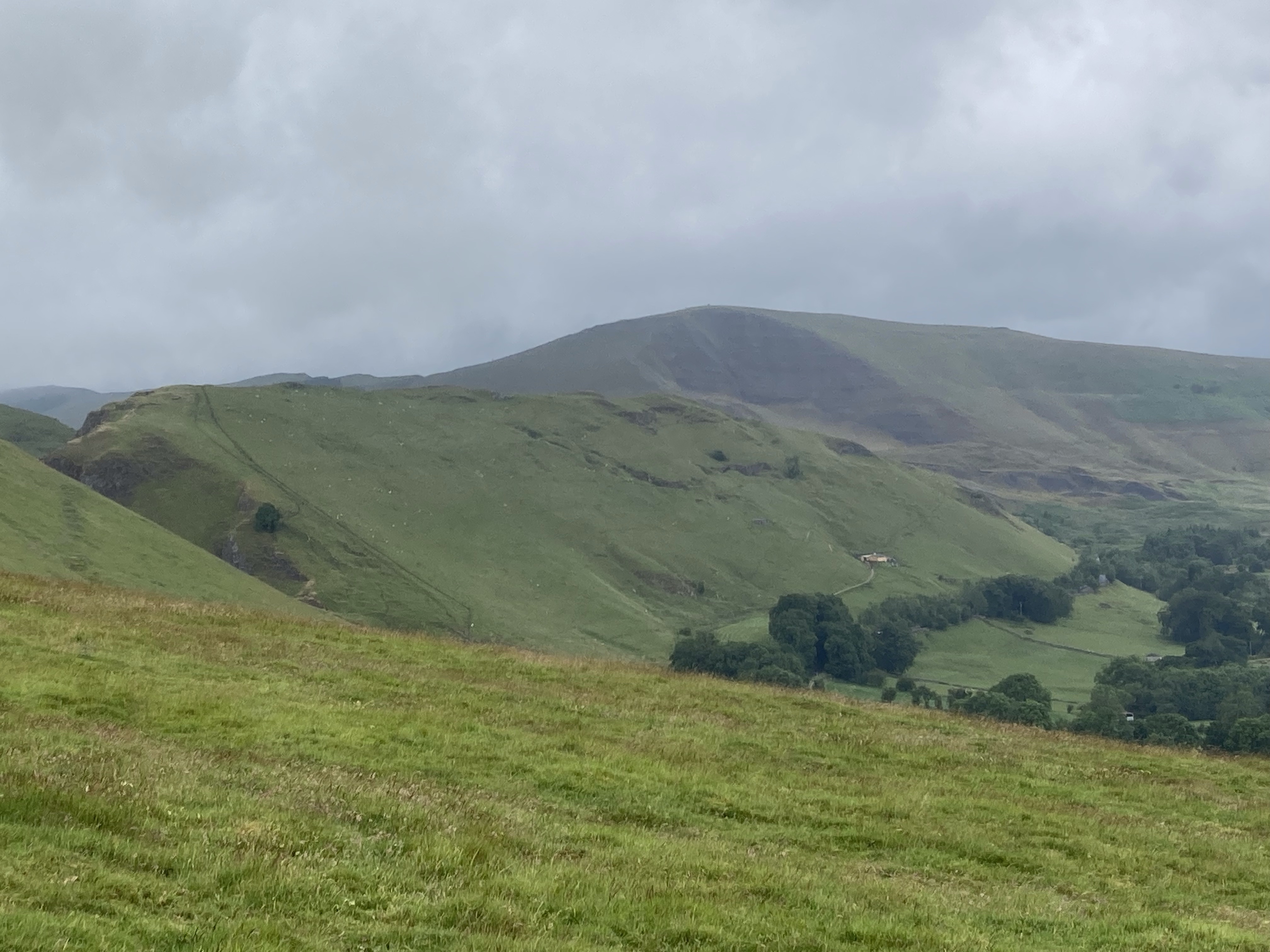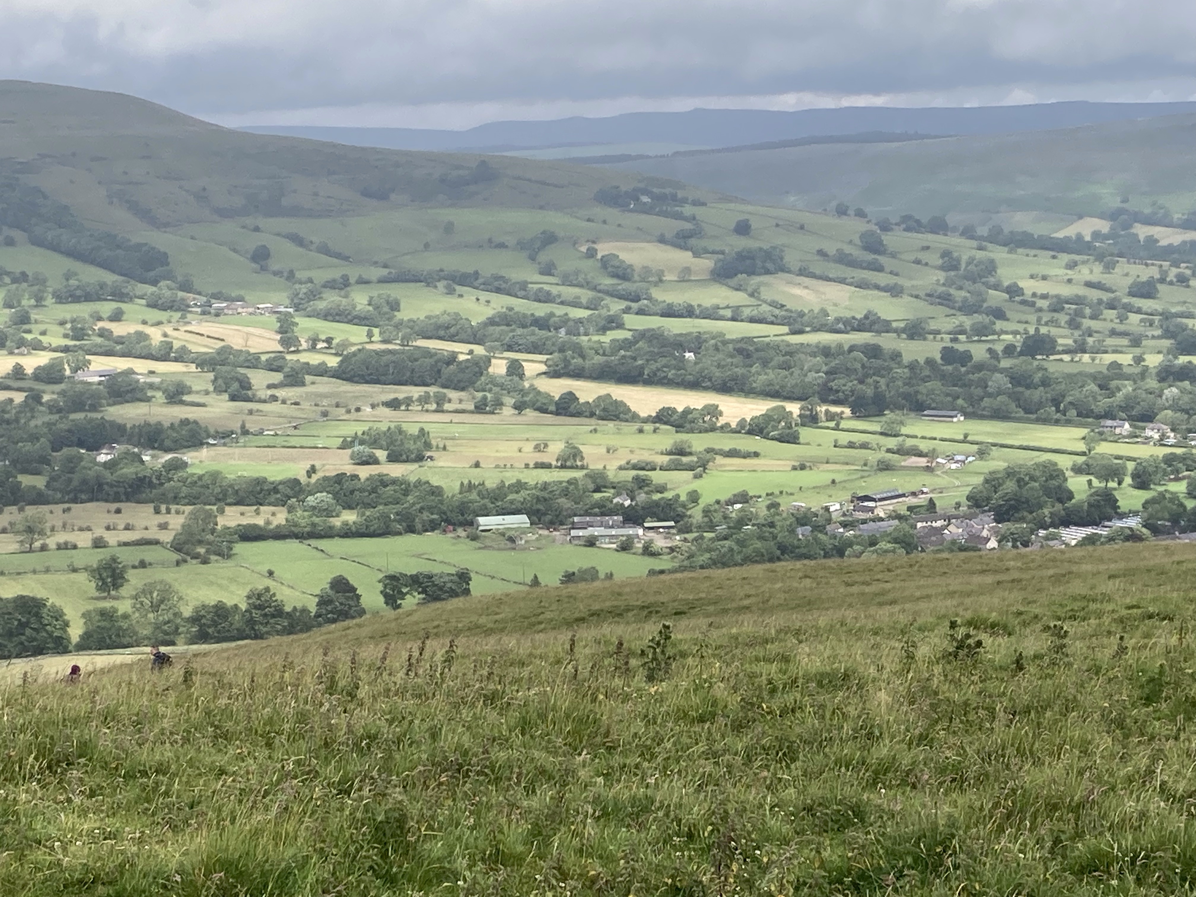 I walked through our village – it is a pretty village, with a quiet atmosphere. I took the path that I believe goes to what is called the Fete field. The footpath continues through it, but a game of football was taking place, so I took the side route, through the brand new, very small housing estate to Whitelea Lane. For a small country road that only goes to Tansley, it was surprisingly busy. It is uphill for about half a mile, nothing too strenuous and there are some lovely views. Before reaching Neville’s farm, I turned onto a footpath beside some old cottages, going into the wood. This is a very pretty, well-used path, with established trees. Before reaching the end of the path, I turned left, and again went uphill – I was beginning to think my cardiologist might not be too happy if this continues – but I stopped regularly as there was so much to see. The wild flowers were just beautiful, and so many varieties, and when I reached the top of this short hill, the views in all directions were stunning, and almost unexpected. Tansley is already at 450′ odd of elevation, and it didn’t seem as if it were possible to go much higher, but today’s highest point was 831′.