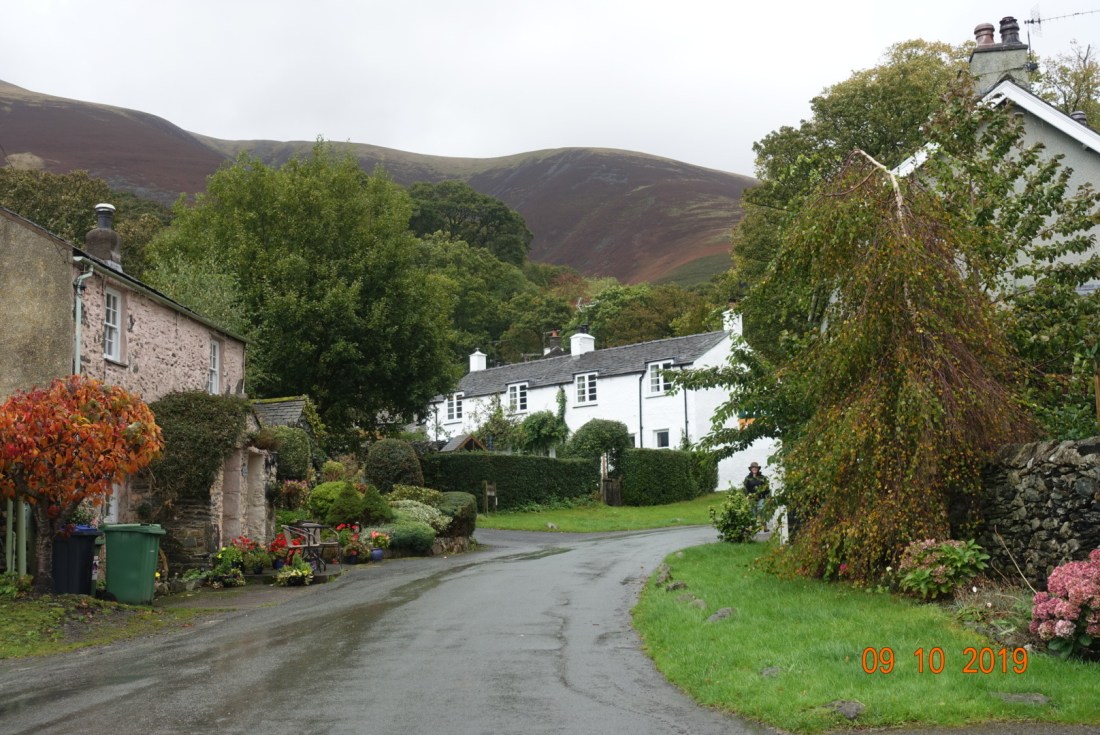 Crossing the main A66, I continued through wet fields to Applethwaite (meaning ‘clearing in a forest with apples’, a very attractive village of just a few houses. I was very surprised to see some stocks here. There is also a former mill.