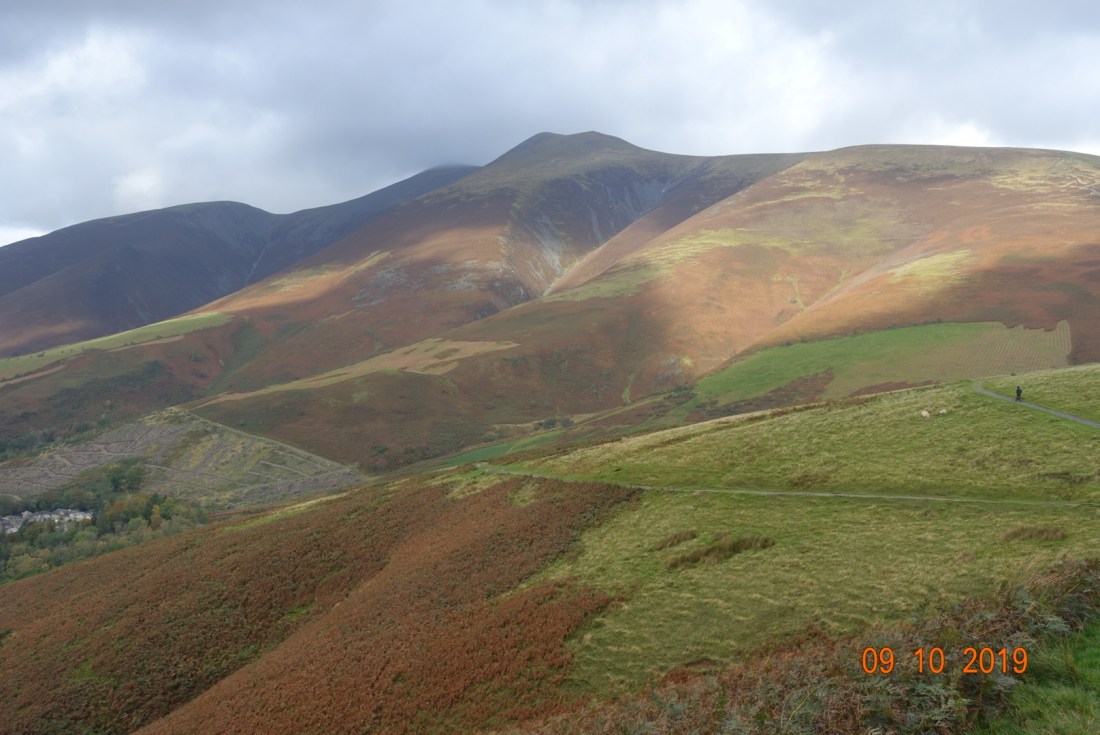 The walk over the meadows provided excellent views of the Skiddaw range. I then followed minor roads which were relatively busy for the size of the road as it takes you to the main car park where people commence their amble to the top of Skiddaw, not on my plan for today.