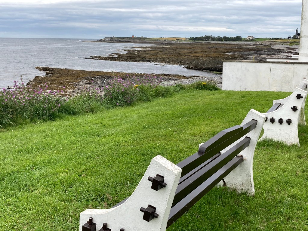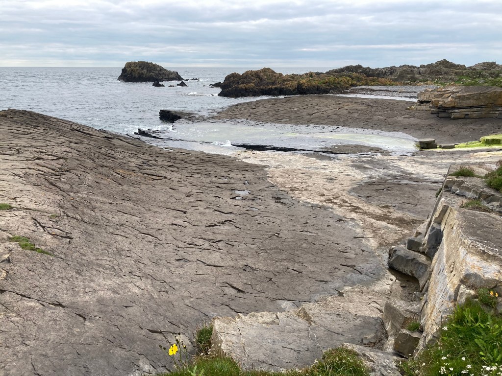 The path takes you around the lighthouse, where you can take a look at the old foghorn. This is the most southerly point on Langness. It is a good stopping point for lunch, which is exactly what I did yesterday. As I sat muching away I heard the lamenting sound of a seal and got out my opera glasses (yes I know, proper binoculars would be so much better, but these fit into a side pocket). There they were, some lumbering about on the rocks, others swimming in the sea. As I continued on the eastern side of Langness there were even more seals. They do seem very big this year.