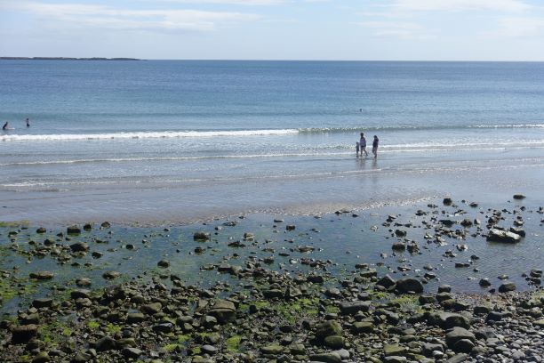 As you can see from the photographs, if the tide is out, you can walk along the beach. Even so, there is a grassy footpath from the car park which is good to follow. It bypasses Derbyhaven and the start of the golf course, making a more interesting start to the walk. There are a few pebbles on the path as these are constantly thrown up by the sea, but it is easy walking. Eventually you reach the small lane and you are obliged to walk along this most of its way, but no more than half a mile or so. It is very quiet and there is lots of vegetation, birds and butterflies to look out for. You will pass the stone bird water trough commemorating one of the island’s principal ornithologists and you will very likely see Egrets or Herons perching on the rocks around here.