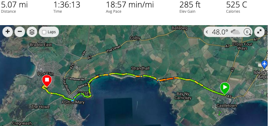 The golf club welcome visitors and the food is always tremendous so don’t be shy about calling in. The rest of the walk takes you around the glorious bay of Derbyhaven and then back along the road for about half a mile to the car park. There are few places like this on our island, and I thoroughly recommend it for a morning walk, a lunchtime walk, or an afternoon walk. Keep in mind, it can be very blowy as it is mostly flat with just a few humps and hollows. You will also be walking in a southerly direction so the sun can be a problem on the odd occasion it shows itself.